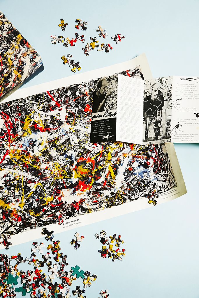 Jackson Pollock Puzzle - The Hundreds from cdn.shopify.com On the floor i am more at ease, i feel nearer, more a part of the painting, since this way i can walk around in it, work from the four sides and be literally 'in'. Nel caso del puzzle di jackson pollock il soggetto è il dipinto convergence (convergenza). And today we're talking about jackson pollock in the studio and this is going to be real short. Si tratta di un'opera del 1952 dalle dimensioni imponenti, un olio su tela grande 2,37 metri di altezza e 3,93 m di larghezza. Finding meaning in pollock's paintings is easier than putting together one of his jigsaw puzzles. His distinct, abstract methods led to the creation of many wonderful paintings that sold for millions. 23 for jackson pollock and aboufadel et al. Several years ago, my parents were cleaning out their basement and given my inclination for the arts, thought i would enjoy having this puzzle they bought in the 1960s.