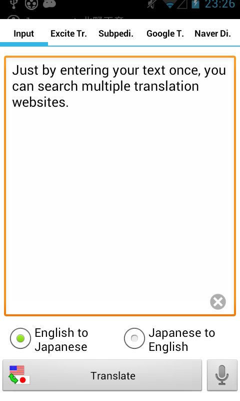 We did not find results for: Google translate english to japanese. Maybe you would like to learn more about one of these? It offers a website interface, a mobile app for android and ios, and an application programming interface that helps developers build browser extensions and software applications. Google translate is a multilingual neural machine translation service developed by google, to translate text, documents and websites from one language into another. Check spelling or type a new query.